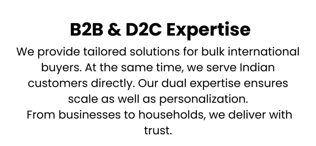 We proudly export to buyers across Asia, Europe, North America, and the Middle East. With strong trade relations, robust shipping partners, and a growing international footprint, Lakecity Wellness & Lifestyle LLP continues to expand its global presence.